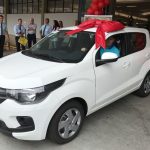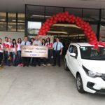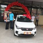 Leandro Augusto de Camargo recebeu as chaves de um lindo Fiat Mobi. Ao lado da esposa, ele parecia ainda não acreditar na conquista.