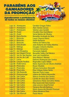 A Rede Jaú Serve realizou no dia 14, o sorteio da promoção ‘Féria da Família Feliz. A campanha contemplou um ganhador de cada loja da rede com R$ 5 mil em viagens em parceria com a CVC.