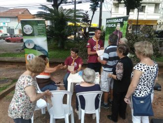 Os jovens já ajudaram em várias ações com moradores locais. O trabalho de hoje se baseou em uma feira de saúde, realizada na Praça Cavalheiro Virgílio Lunardi, a Praça do Bairro. Centenas de pessoas passaram pelo projeto ao longo das ações.