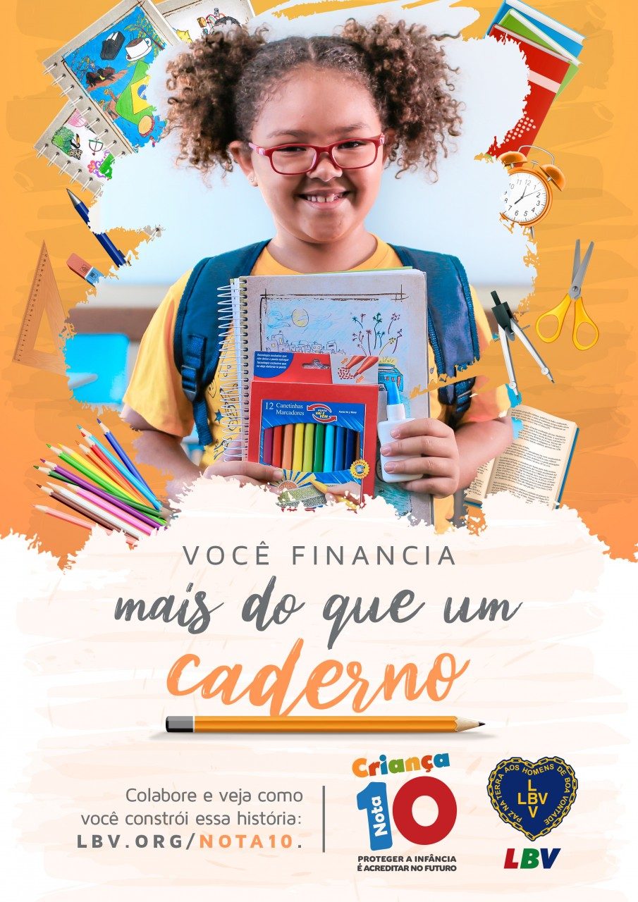 A Legião da Boa Vontade (LBV) iniciou mais uma importante campanha de mobilização social em apoio à educação brasileira: Criança Nota 10 — Proteger a infância é acreditar no futuro! A iniciativa visa angariar doações e entregar no início do ano letivo, 19 mil kits de material pedagógico para crianças e adolescentes atendidos pela Instituição e por organizações parceiras nas cinco regiões brasileiras.