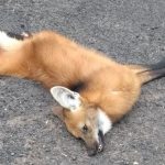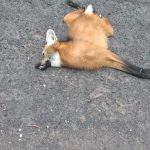 Uma triste cena foi registrada na manhã desta quarta-feira, dia 02, pelo nosso leitor Cleiton Meronha. Ele transitiva na Rodovia Geraldo Pereira de Barros, SP 191, em Botucatu, quando se deparou com um lobo-guará morto na pista.