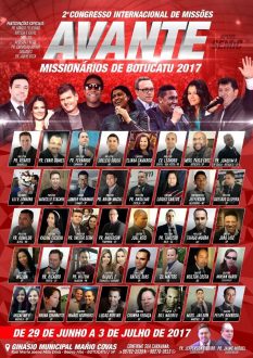 Tem início nesta quinta-feira, dia 29, aquele que é considerado um dos maiores eventos evangélicos do interior paulista, o 2º Congresso Internacional de Missões, o #AVANTE Missionários de Botucatu 2017. Será no Ginásio Municipal de Esportes, a partir das 19 horas.