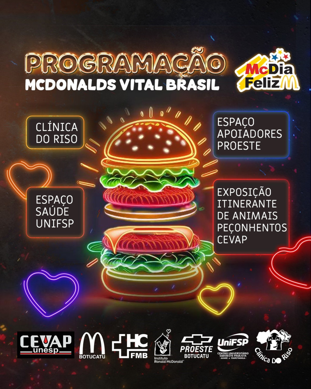 Coordenada nacionalmente pelo Instituto Ronald McDonald e, em Botucatu, pelo Hospital das Clínicas da Faculdade de Medicina de Botucatu – Unesp (HCFMB) em parceria com a Fundação para o Desenvolvimento Médico e Hospitalar (Famesp), a campanha do McDia Feliz 2024 será realizada neste sábado, 24 de agosto, durante todo o dia.