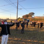 Segundo um dos organizadores, os membros da igreja rezaram pela saúde e permanência dos empregos neste momento de pandemia.
