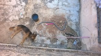 “Desde às 7 horas da manhã eu escutava a cachorra. Ela estava presa e a dona não estava na casa. Não tinha o que fazer. Chamamos a Guarda que veio aqui com o pessoal do Canil, mas não puderam entrar, pois a dona não estava em casa”, disse uma moradora próxima ao local.