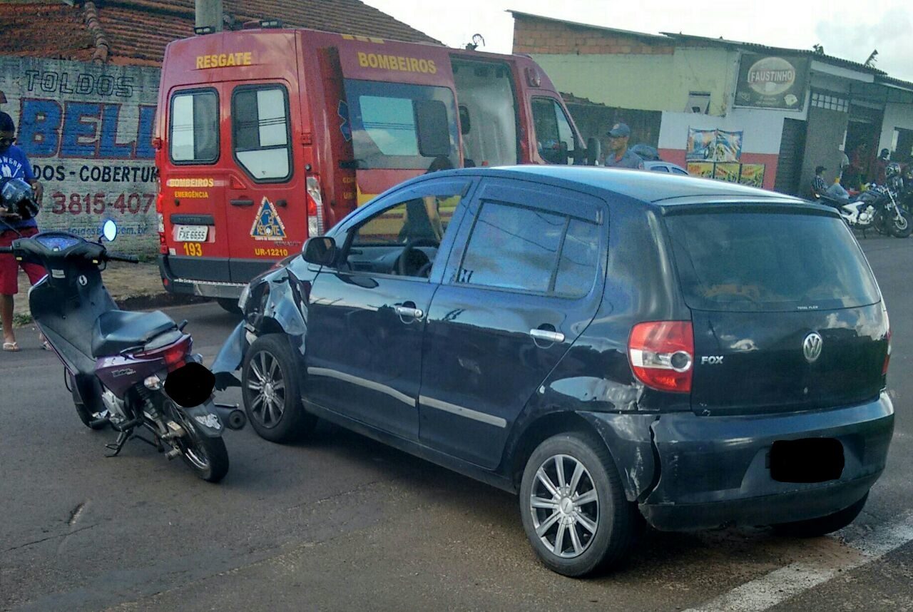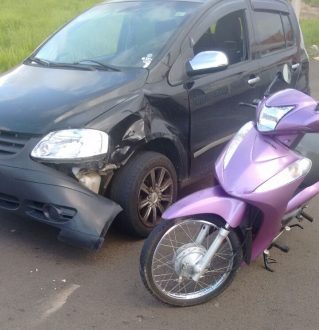 O Corpo de Bombeiros atendeu a um acidente de trânsito na tarde deste domingo, dia 05, na Vila Jardim, envolvendo um carro e uma motocicleta. Segundo informações, a condutora da moto transitava pela Rua Ulisses Rossi Grassi com sua filha na garupa, quando colidiu com o VW Fox que não parou no cruzamento.
