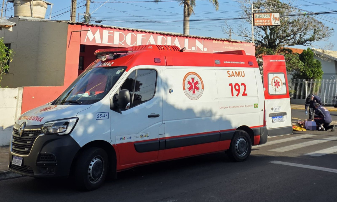 A colisão foi registrada por volta das 7h. O jovem foi atendido pelo SAMU, com suspeita de lesão considerável em um dos joelhos, além de escoriações pelo corpo.