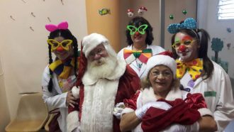 Acompanhado da Mamãe Noel, o Papai Noel do Shopping Botucatu visitou na quarta feira, 14, a Enfermaria da Pediatria do Hospital das Clínicas da Faculdade de Medicina de Botucatu (HCFMB), fazendo a alegrias das crianças internadas, que participavam de uma festinha de Natal.