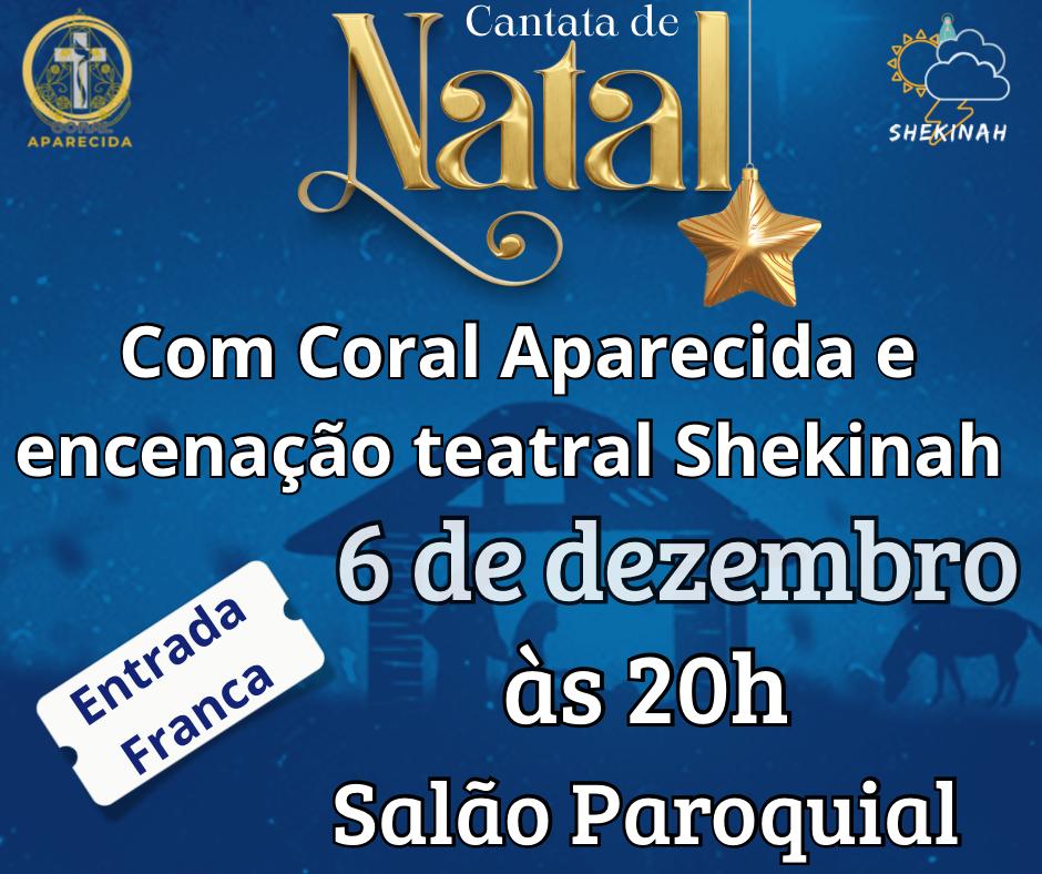 A Paróquia Nossa Senhora Aparecida, em Botucatu, realiza neste sábado, 6 de dezembro, uma programação especial para celebrar o espírito natalino. A comunidade sediará a Cantata de Natal, com apresentação do Coral Aparecida e a participação do grupo de teatro Shekinah, que fará uma encenação temática.