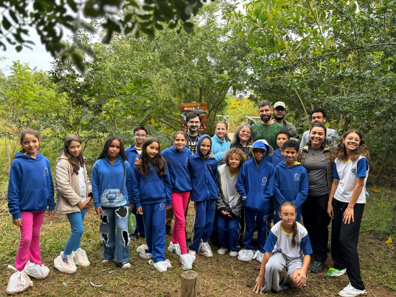 A atividade também contou com a presença dos membros do projeto Passarinhando, Bruno Oliani de Risso, Maria Paola Oliveira da Silva e Gabriel Aires de Souza, que acompanharam as turmas durante toda a trilha, ao lado da professora Silvia.