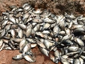 Cada um dos tanques tem cerca de 2,5 mil peixes, que são criados para serem vendidos. Ainda segundo os pescadores, os peixes foram retirados dos tanques e levados às margens para que fossem enterrados em valas.