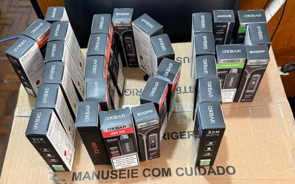 Com base nas evidências, foi solicitado e cumprido um mandado de busca e apreensão no imóvel. Durante a vistoria, os policiais localizaram, em um cômodo trancado, mais de 250 unidades de cigarros eletrônicos, além de uma máquina de cartão utilizada para o recebimento das vendas.