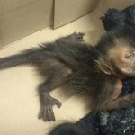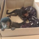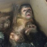 Tal situação levou a Equipe a fazer uma vistoria minuciosa no veículo, sendo localizados embaixo dos bancos dianteiros cinco primatas conhecidos como “macacos prego”, animais em situação de ameaça na natureza. Os macacos estavam sendo transportados em meio a papéis, restos de alimentos, ferramenta (martelo) e uma embalagem de lubrificante para motores.