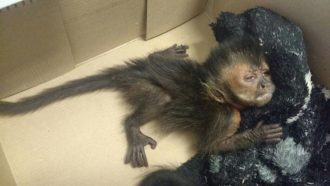 Tal situação levou a Equipe a fazer uma vistoria minuciosa no veículo, sendo localizados embaixo dos bancos dianteiros cinco primatas conhecidos como “macacos prego”, animais em situação de ameaça na natureza. Os macacos estavam sendo transportados em meio a papéis, restos de alimentos, ferramenta (martelo) e uma embalagem de lubrificante para motores.