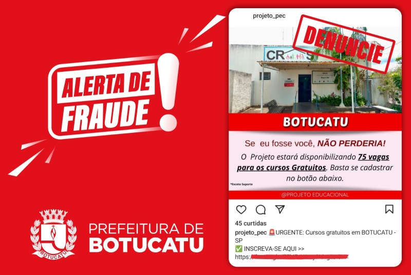Todos os formulários de inscrições para cursos ou serviços oferecidos pela Prefeitura são disponibilizados no site, não utilizando sites particulares ou de terceiros. A Prefeitura também esclarece que não faz contato por telefone ou aplicativos de mensagens oferecendo formações profissionais como esta.