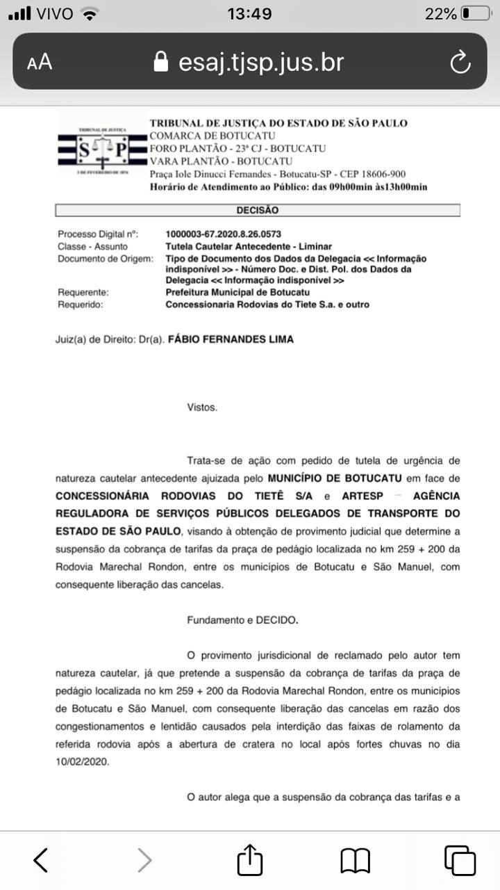 A Prefeitura de Botucatu ingressou na Justiça para conseguir a liberação da cobrança de pedágio na praça da Marechal Rondon em Botucatu. A solicitação já havia sido feita à concessionária Rodovias do Tietê e também à Artesp, Agência Reguladora do Estado de São Paulo na última quinta-feira, dia 20.