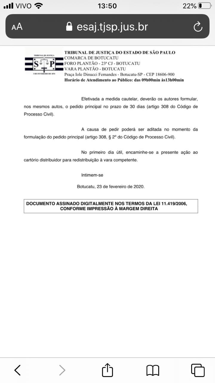 A liminar foi apreciada pelo Plantão Judiciário, já que deu entrada no fórum de Botucatu neste sábado, 22. Porém, o pedido foi negado pela Justiça, segundo apurou o Acontece Botucatu.