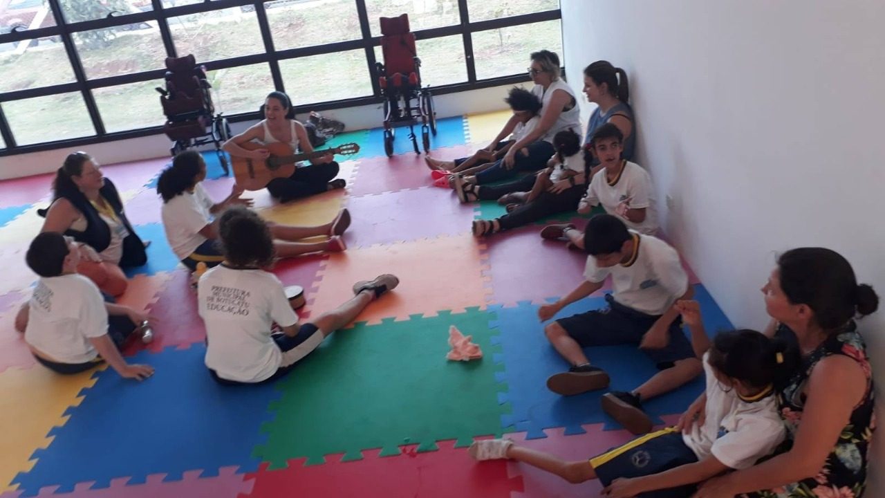 Tanto as atividades sensoriais na piscina do Centro de Inclusão, quanto a musicoterapia, são realizadas por instituições conveniadas a Prefeitura, por meio de chamamentos públicos.