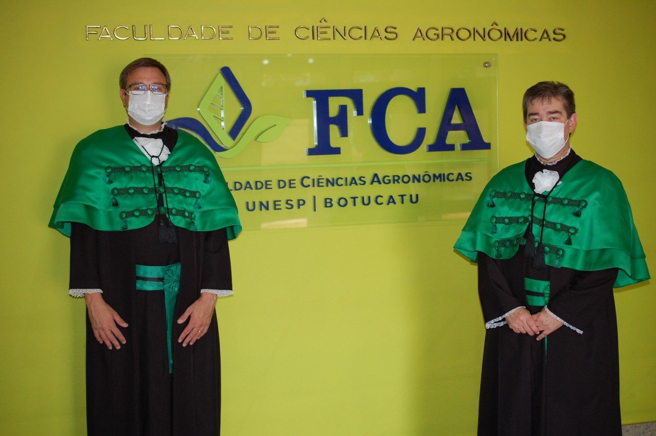 Em solenidade restrita realizada nesta sexta-feira (29 de janeiro) na Fazenda Experimental Lageado, os professores Dirceu Maximino Fernandes e Caio Antonio Carbonari tomaram posse como diretor e vice-diretor da Faculdade de Ciências Agronômicas (FCA) da Unesp, câmpus de Botucatu, para o próximo quadriênio. A cerimônia, presidida remotamente pelo professor Pasqual Barretti, reitor da Unesp, obedeceu a todos os protocolos sanitários para garantir a segurança dos presentes no contexto da pandemia de Covid-19.
