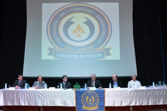 Presidida pelo diretor da unidade, professor Carlos Frederico Wilcken, a solenidade teve a participação do vice-diretor da FCA, professor Dirceu Maximino Fernandes e dos professores Cesar Martins, diretor do Instituto de Biociências (IB) da Unesp; Celso Antônio Rodrigues, diretor da Faculdade de Medicina Veterinária e Zootecnia (FMVZ) da Unesp e Edson Luiz Furtado, diretor-presidente da Fundunesp. Também estiveram presentes os ex-diretores da FCA, professores Carlos Antonio Gamero e João Carlos Cury Saad, além dos professores eméritos Julio Nakagawa, João Nakagawa e Ricardo Antônio de Arruda Veiga.