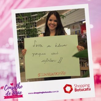 Ainda para marcar o mês das mães, o Shopping Botucatu realiza a campanha online “Conselho de Mãe”. Foram registradas diversas fotos de clientes e funcionários do empreendimento com cartazes sobre conselhos de mãe. As imagens podem ser conferidas no Facebook: “shopbotucatu”.