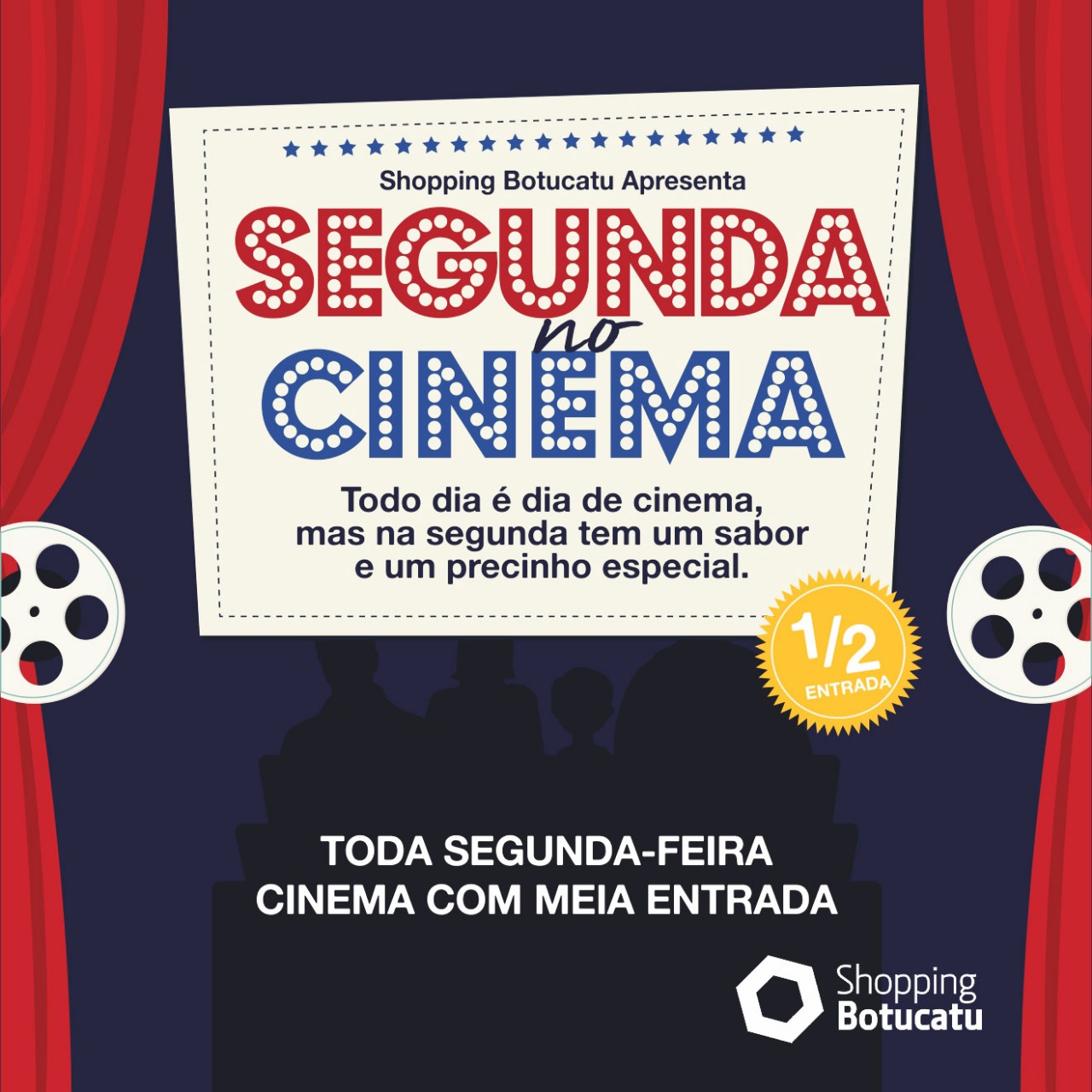 Segunda no Cinema: comece a semana com bom filme! Às segundas-feiras, todos pagam meia entrada.