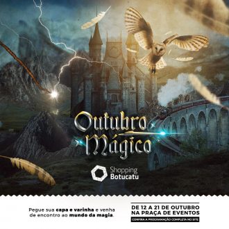 Acontecerá, de 12 a 21 de outubro, o Outubro Mágico na praça de eventos do Shopping. A atração, que terá como principal temática uma famosa saga de filmes “bruxos”, conta com uma programação que inclui oficinas gratuitas, lojinhas com artigos mágicos, jogos, cenário para fotos, aulas, participação de YouTubers especialistas em “magia” e a famosa cerveja amanteigada (bebida não alcoólica temática).