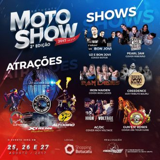 Serviço – O horário do evento será: na sexta-feira das 15 às 22h; sábado das 10 às 22h e domingo das 10 às 20h. A entrada no MotoShow 2017 custa R$ 20,00 (pulseira 3 dias). Somente sexta-feira: R$ 10,00; somente o sábado: R$ 15,00; ou só domingo R$ 10,00. O shopping seguirá seu horário normal de funcionamento, de segunda a sábado, das 10 às 22h. No domingo, a Praça de Alimentação funciona das 11 às 22h e as lojas das 14 às 20h.