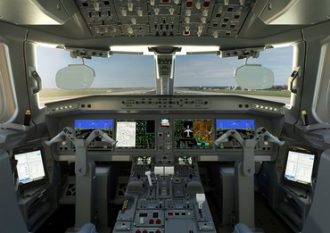 O primeiro simulador do Embraer E2 está sendo construído pela Flight Safety International em seu centro de ensino em Le Bourget, na França. O novo simulador FS1000 da Flight Safety, apresenta um sistema visual de nova geração e um display com maior nitidez e definição de imagem, proporcionado pelo alto contraste do sistema.