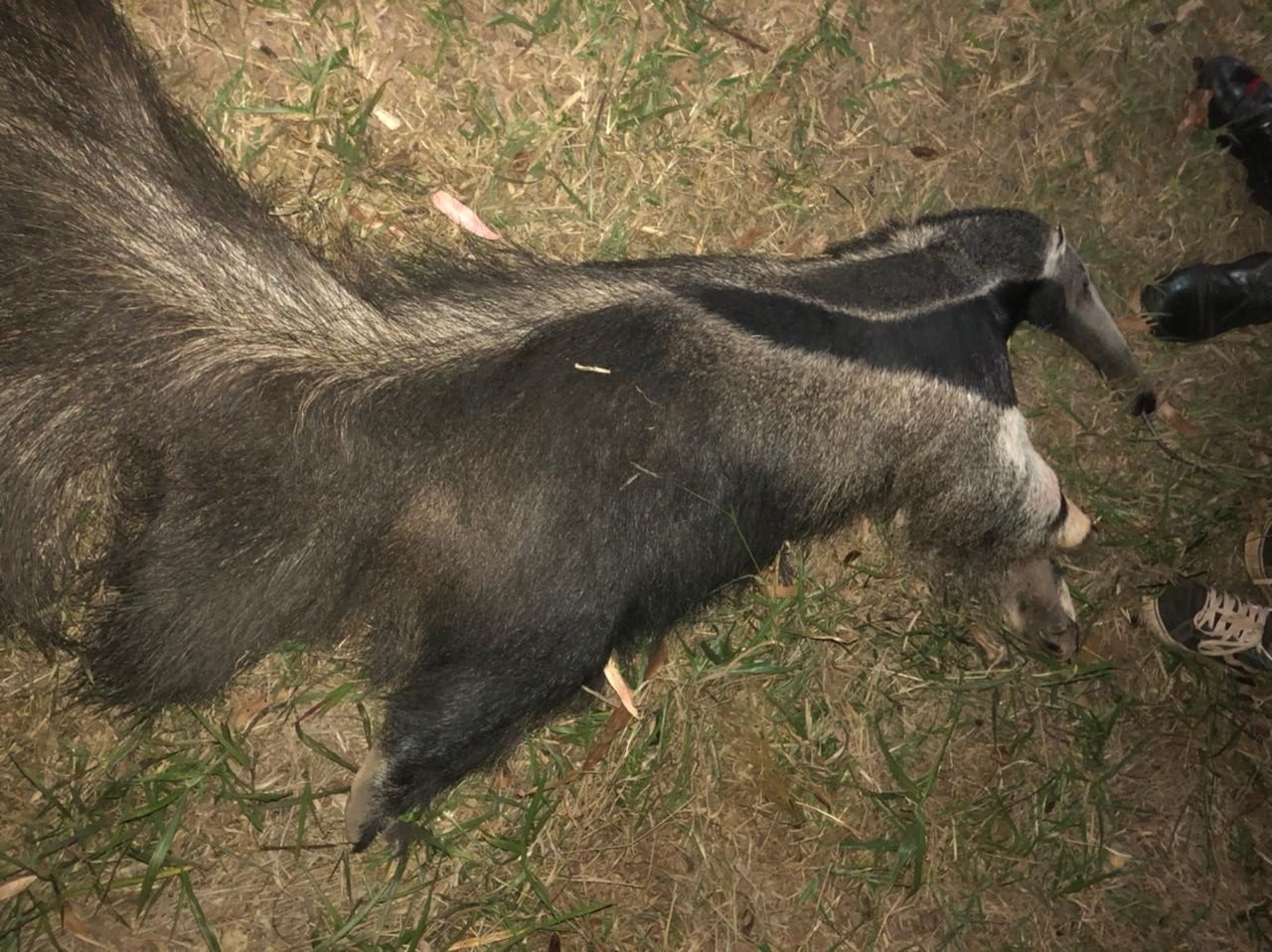 Tamanduá-bandeira morre atropelada na Gastão Dal Farra em Botucatu; motociclista quebrou a perna