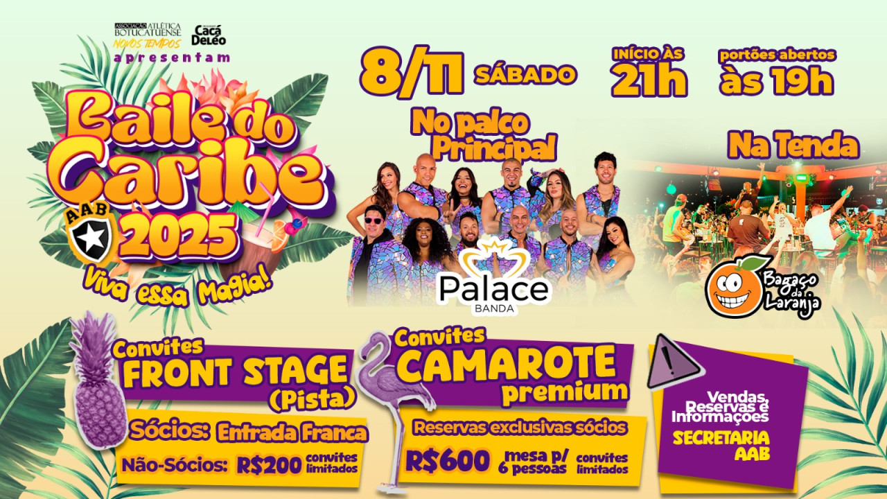 Prepare o colar de flores e entre no clima tropical: vem aí o Baile do Caribe AAB 2025, a festa mais aguardada do ano na Associação Atlética Botucatuense. O evento acontece no sábado, dia 8 de novembro, e promete transformar o clube em um verdadeiro paraíso caribenho, com decoração temática, frutas exóticas e uma atmosfera vibrante de pura diversão.