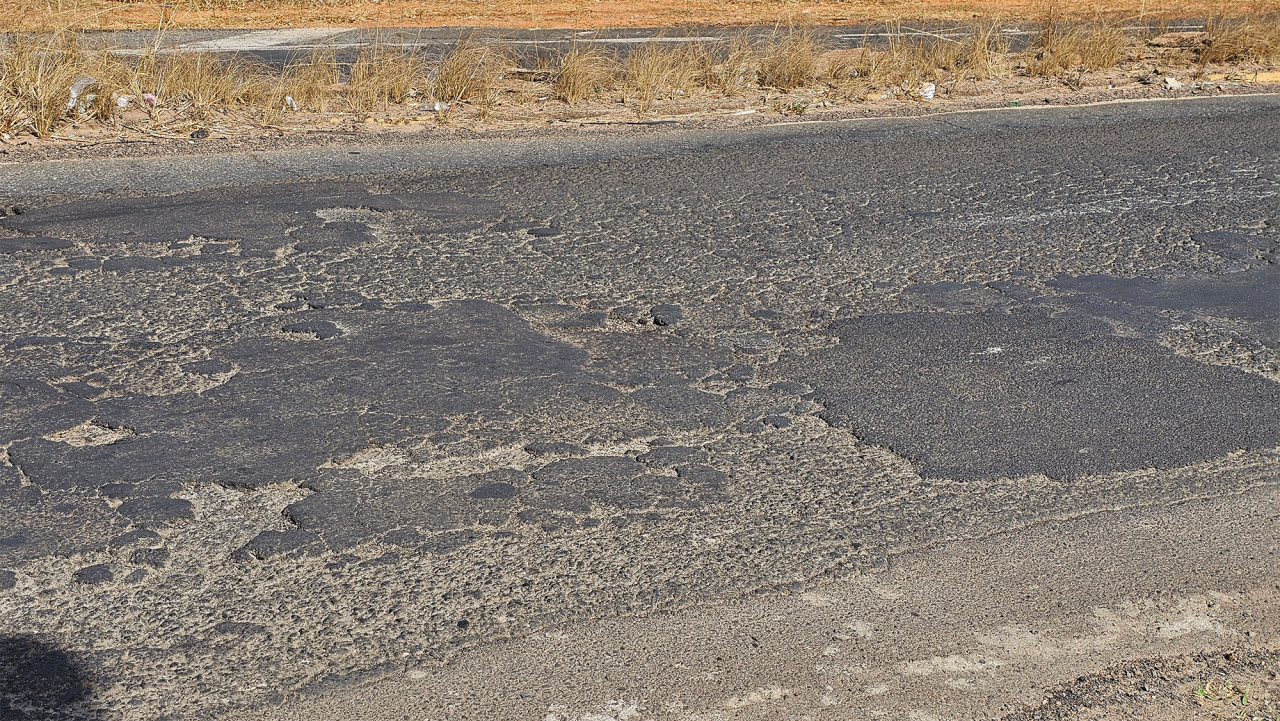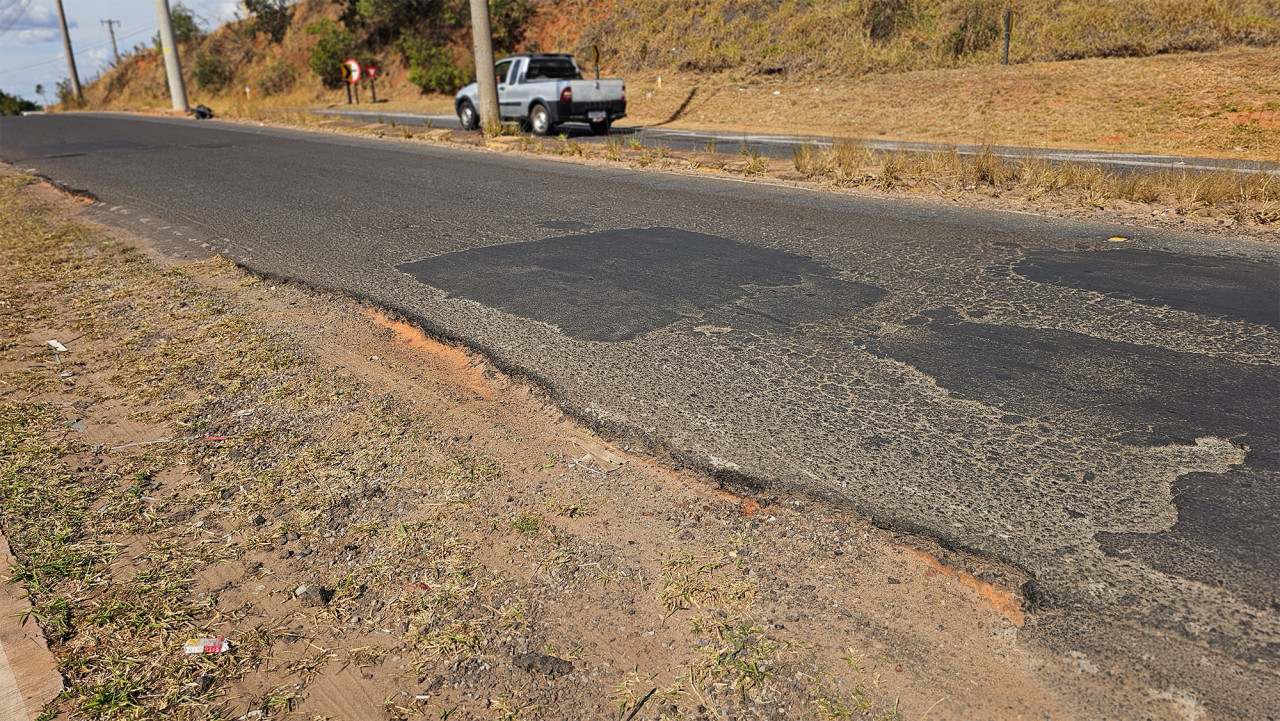 No local, o asfalto apresenta desgaste severo, buracos e desagregação das bordas da via, que se desfazem progressivamente com a passagem constante de carros, ônibus e caminhões. Em diversos pontos, especialmente antes do viaduto da Marechal Rondon, a faixa de rolamento já está visivelmente reduzida, aumentando o risco de acidentes e dificultando o fluxo de veículos.