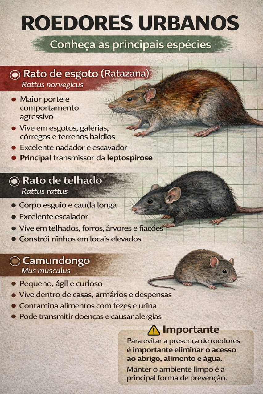 Educação e conscientização A participação da comunidade é fundamental. Mudanças de hábitos, como evitar o descarte inadequado de lixo e restos de alimentos, são decisivas para o controle de roedores no município.