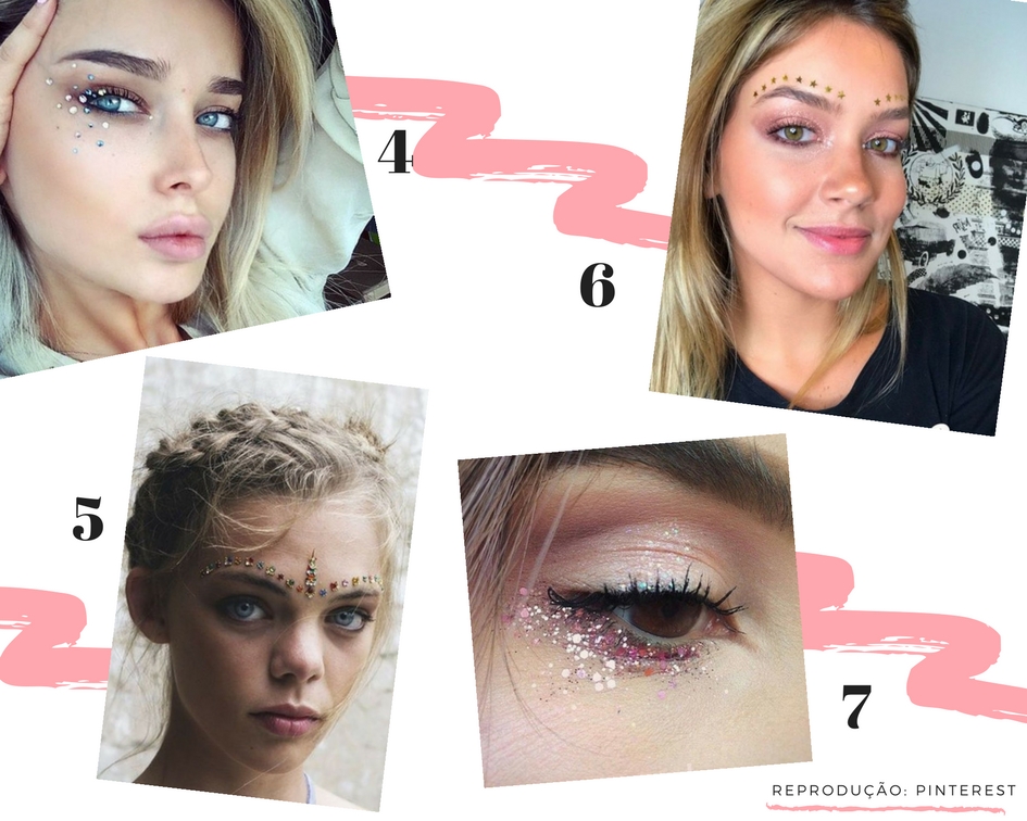 No post de hoje eu trouxe 10 modelos para inspirar a aplicação de glitter nesse carnaval. Começamos com as aplicações mais simples e terminamos com as mais elaboradas. Enumeirei as imagens para facilitar na explicação. Bora ver?