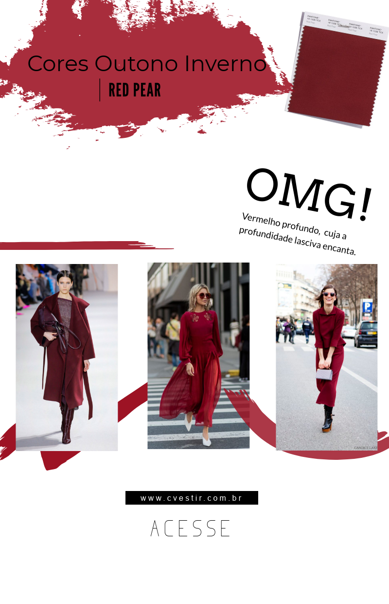 Vamos começar com a Red Pear: um vermelho fechado, que traz aquele ar de inverno sofisticado.