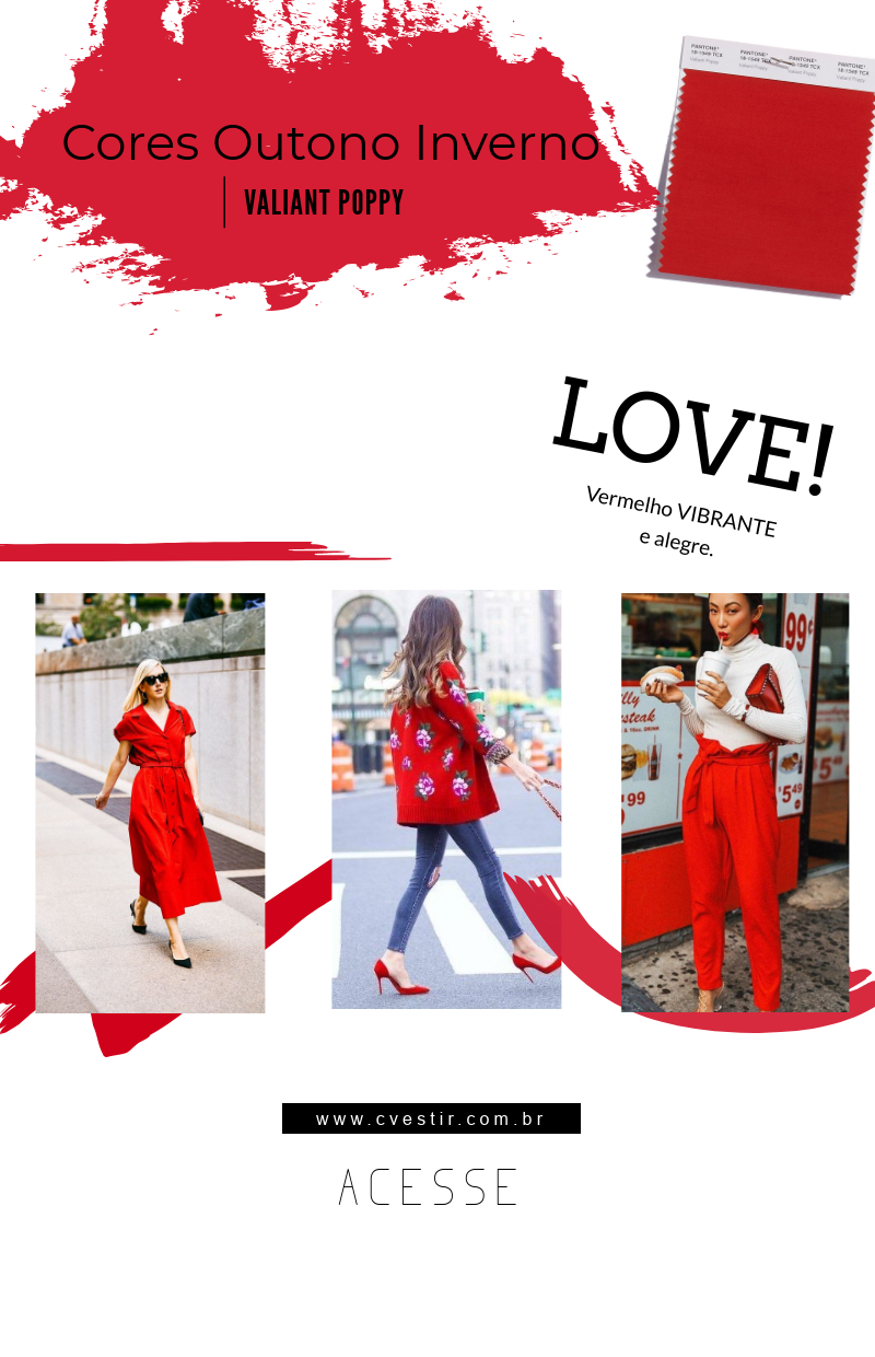 Continuando nossa série de cores que são tendência nesse Outono inverno, não é segredo que que o vermelho veio com tudo nessa estação não é mesmo? semana passada falamos do Red Pear que é um tom sóbrio, o Valiant Popy é um vermelho vibrante que transmite coragem e traz um pouco mais de ousadia na composição do look, vamos conferir?
