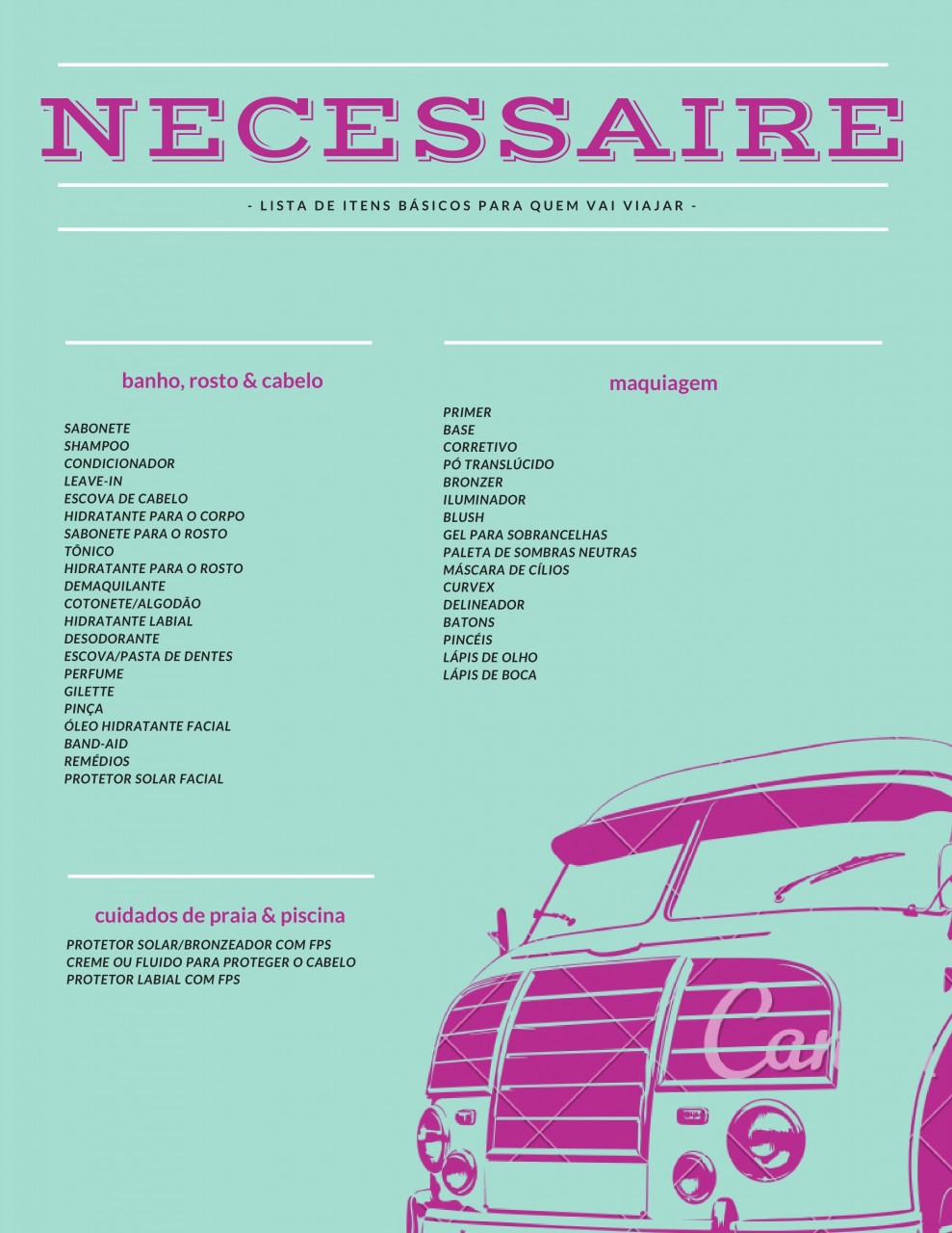 Eu finalmente entrei de férias da faculdade e vou conseguir ir para Botucatu. Arrumando minhas coisas, decidi montar uma lista de itens indispensáveis para ter uma nécessaire completa. Nessa época do ano muita gente vai viajar e é sempre bom estar com tudo em mãos. Fiz a lista baseada no que eu costumo levar nas minhas viagens, mas vocês podem personalizar de acordo com os seus produtos preferidos. Uma dica que facilita muito é separar em categorias: uma necessaire para praia/piscina, uma para maquiagem e outra para os outros produtos. Desse jeito fica bem mais fácil achar o que você está procurando. Bora ver?