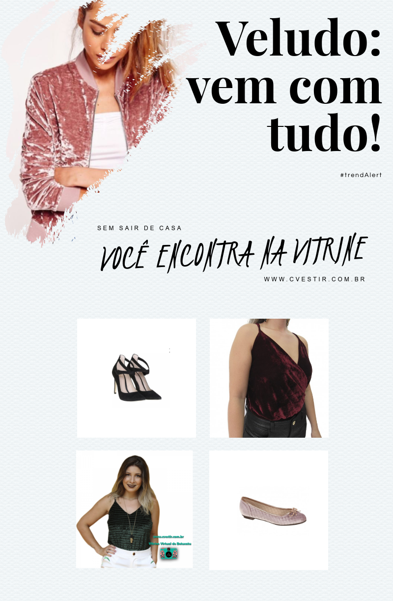 Continuando com as tendências que vem para o outono inverno, o veludo apareceu no ano passado mas continua em 2018 com tudo! uma aposta certeira para composição do look nesse inverno! Que tal dar uma olhada nos looks da vitrine C.vestir?