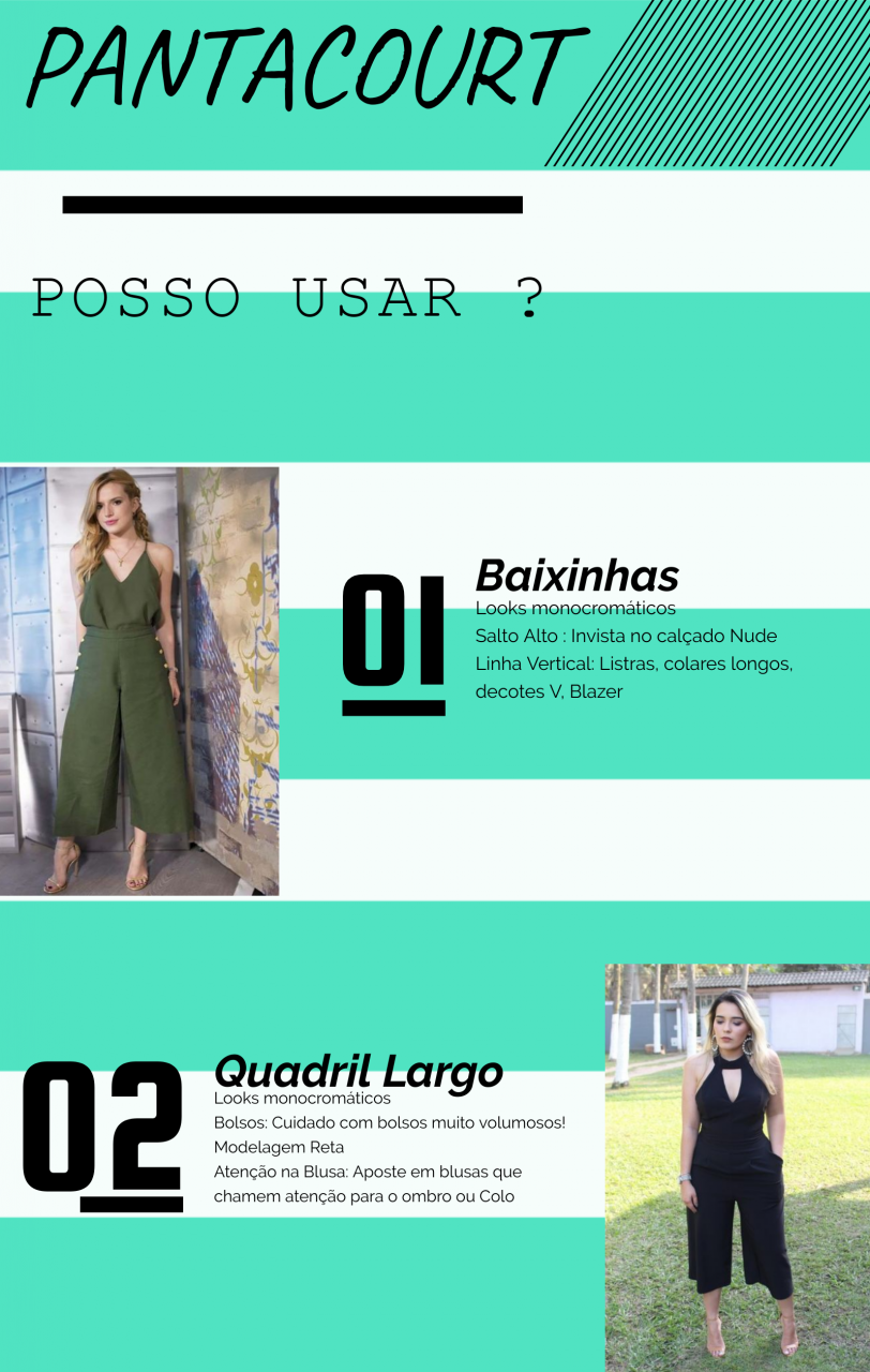 Por ter esse comprimento entre o joelho e a canela a peça gera muitas dúvidas na hora de montar o look para alguns biótipos, mas o segredo é conhecer o seu biótipo e saber quais os truques certos para não errar na hora de escolher as peças e não “cortar” a sua silhueta.