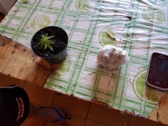 Também acharam 28 porções e um vaso com uma muda da planta canabis Sativa, que dá origem a maconha. Foi dada voz de prisão aos indiciados, sendo que o Conselho Tutelar foi acionado e ficou responsável pelos filhos do casal.