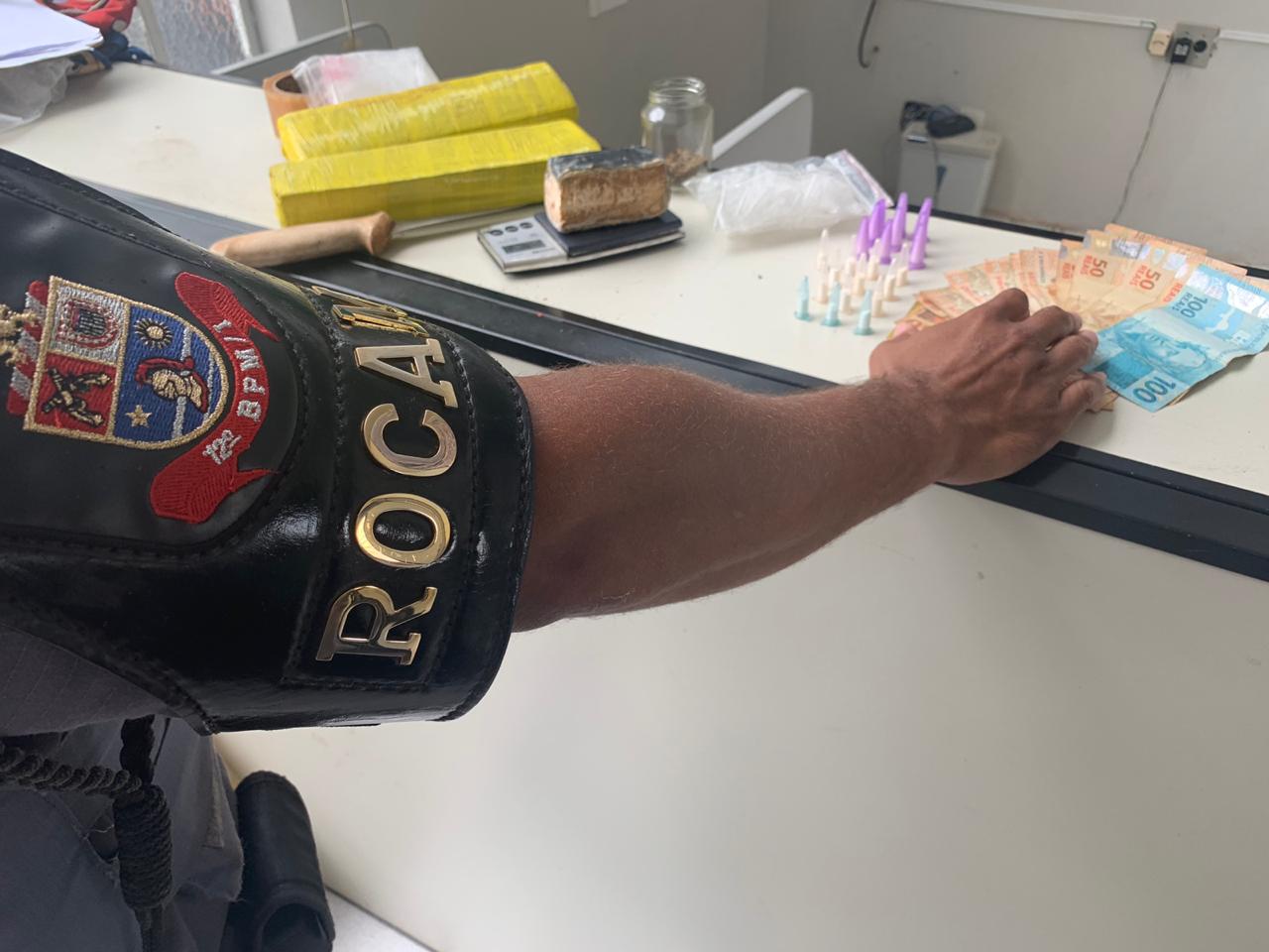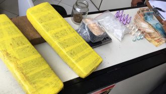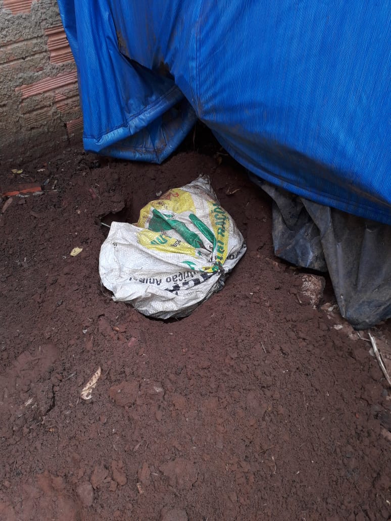 Foi constatado posteriormente tratar-se de um tijolo de maconha. Na mesma hora foram realizadas diligências até a residência do outro suspeito, onde foram localizados 21 “pinos” de cocaína. Ainda averiguando informações de que um dos homens usava um terreno vizinho para a guarda de entorpecentes, o local foi vistoriado.