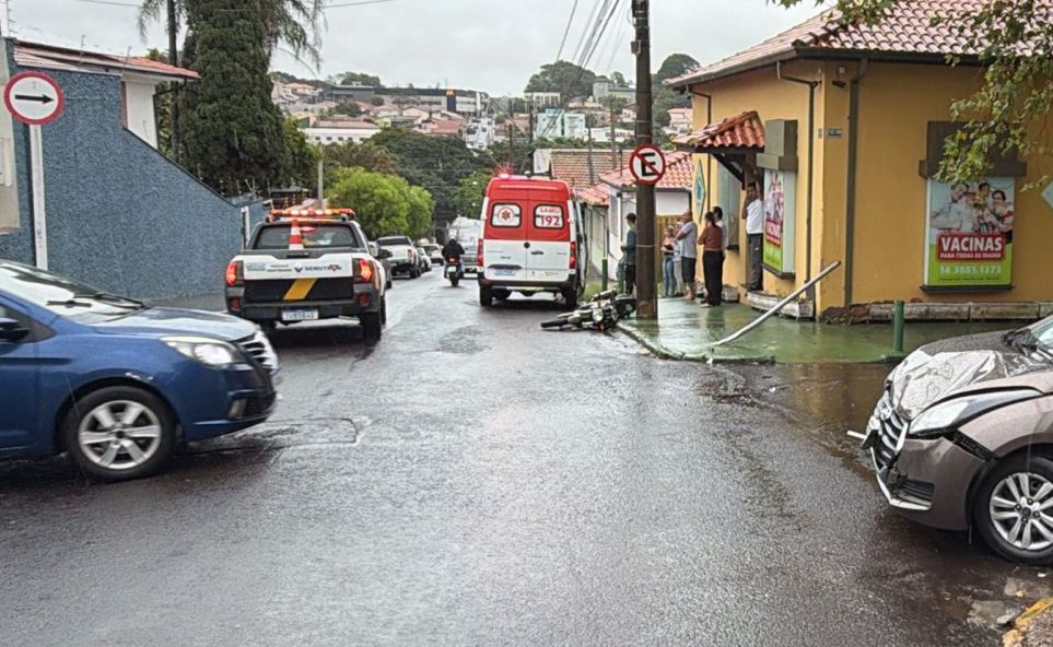 De acordo com testemunhas, o piloto de uma motocicleta teria avançado a preferencial e acabou atingindo um veículo que descia pela Rua Visconde do Rio Branco.