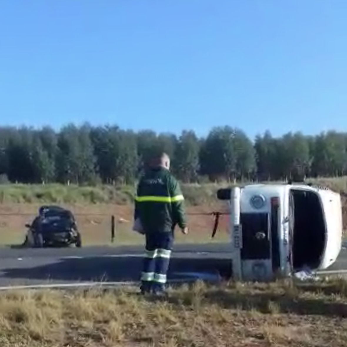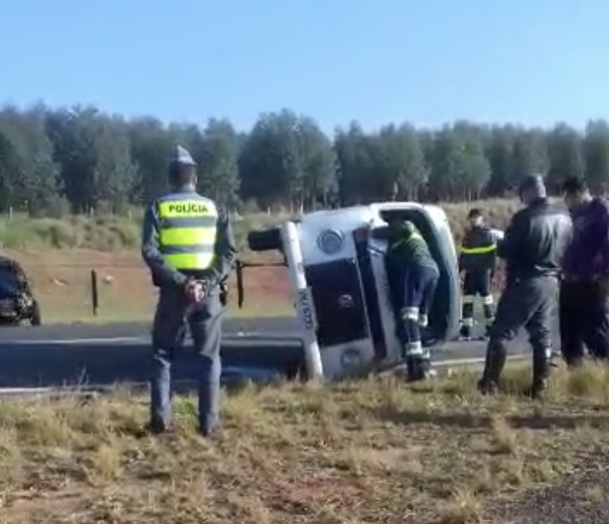 Com a força do impacto a Kombi acabou tombando na pista. No inteirior do veículo estavam 10 adolescentes que vinham para Botucatu estudar, além do motorista.
