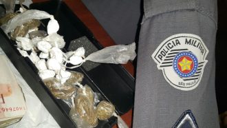 Durante a abordagem foram localizados com ele 23 porções de cocaína, 9 porções de maconha, um pedaço a granel, 2 porções de crack e R$ 108, valor proveniente da venda de drogas. O adolescente foi encaminhado ao Plantão de Polícia, onde foi apreendido.