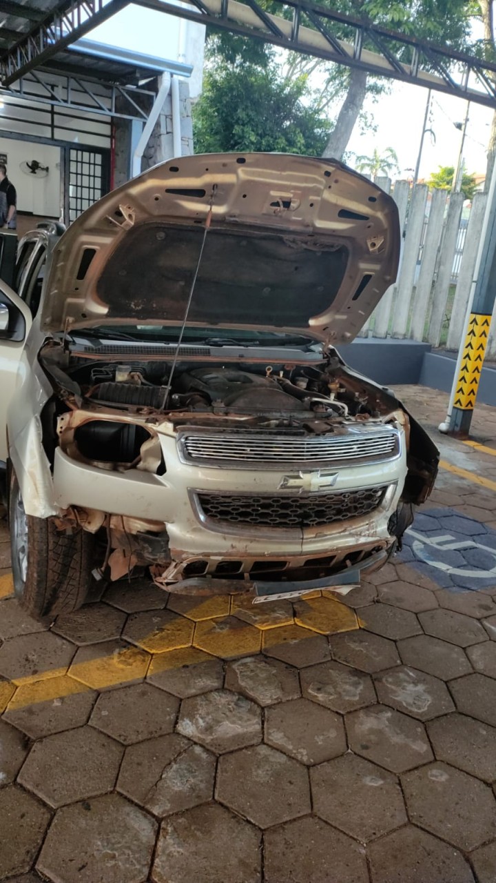 Durante fiscalização administrativa no KM 220 da rodovia, policiais rodoviários deram sinal de parada a uma caminhonete GM modelo S-10, cabine dupla. O condutor não respeito o sinal e empreendeu fuga do local.