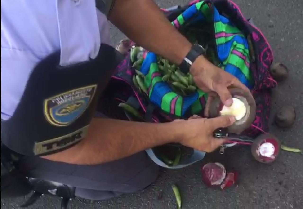 Foi notado pelos policiais que a passageira da poltrona de nº 15 ficou nervosa com as perguntas que lhe eram feitas, alegando não compreender nada em português. Em revista na sua bolsa no bagageiro externo, constatou-se que a mulher transportava legumes, entre eles ervilhas e beterrabas.