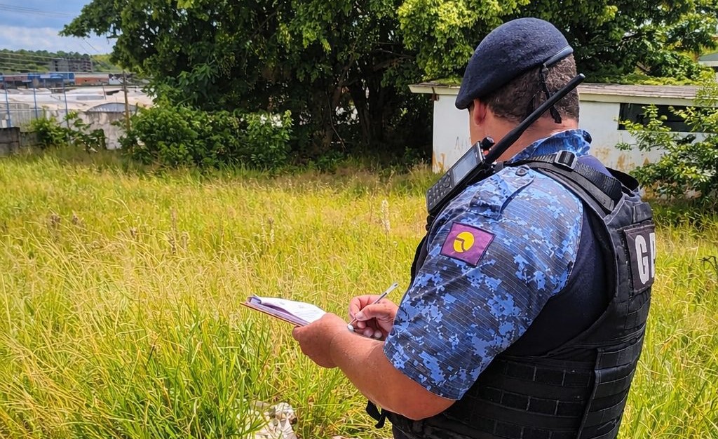 A equipe da Guarda Civil Municipal foi acionada pelo Centro de Operações Integradas (COI) para averiguar a situação. No local, os agentes constataram que dois indivíduos haviam descartado, de forma irregular, um sofá velho e outros entulhos em um terreno localizado em frente à própria residência.