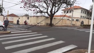 Esse é um dos pontos de maior movimento de veículos no centro de Botucatu. A fiação ficou exposta em uma situação muito perigosa, sendo que populares sinalizaram o trânsito logo após o ocorrido para evitar acidentes.