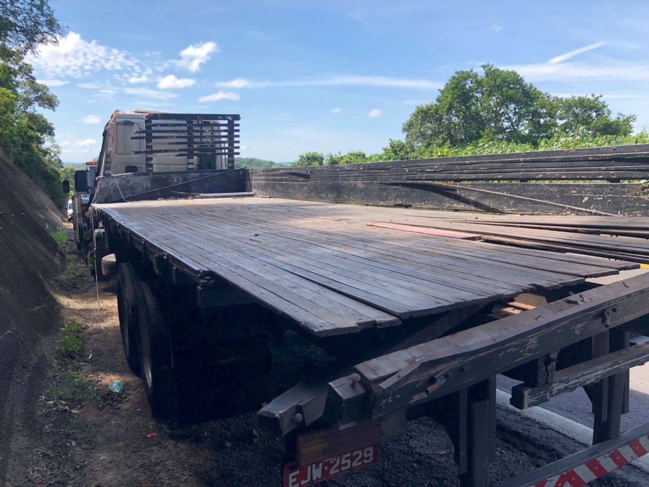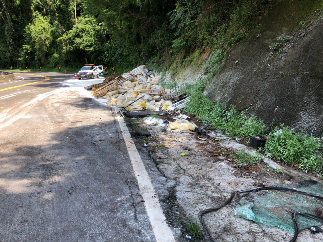 No local, a reportagem do Acontece Botucatu apurou com os Cabos Adriano e Justino, da Polícia Rodoviária, que o condutor sentiu que estava com problemas no freio do caminhão. Tentando evitar uma tragédia maior, que seria perder o controle do lado do barranco, o mesmo jogou o veículo para o lado contrário em um momento em que não haviam veículos, fazendo com que o caminhão tombasse na pista, derrubando parte da carga.