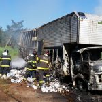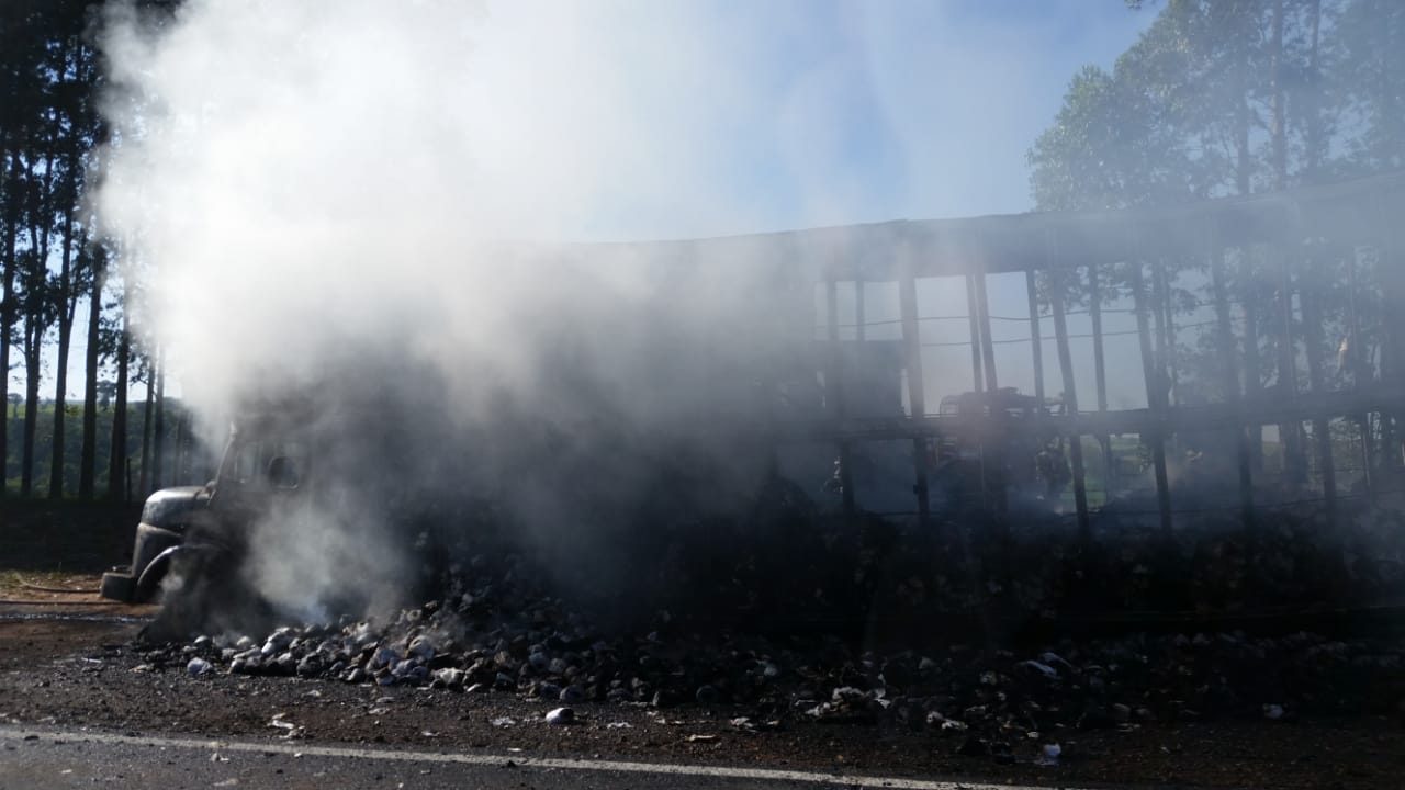 O veículo ficou totalmente destruído, perdeu sua carga e os Bombeiros tiveram dificuldade para conter as chamas. O caminhão seguia sentido São Manuel.